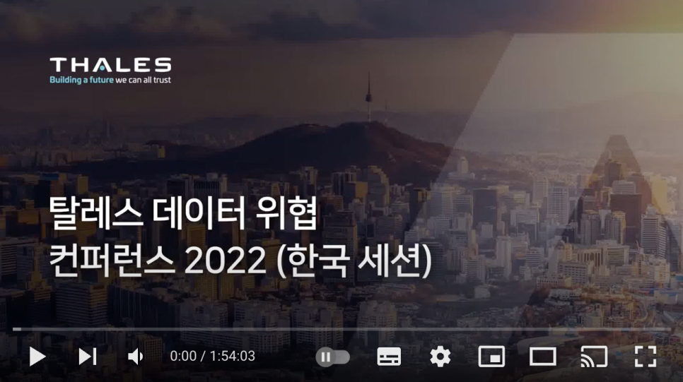 귀하의 데이터를 보호하는 기업들은 탈레스를 통해 자신들의 데이터를 보호합니다. 데이터 보안에 대해 중요한 결정을 내려야 하는 순간이 증가하고 있습니다. 암호화 전략을 수립하거나, 클라우드로 데이터를 이전하거나, 규제 준수 요구사항을 충족시켜야 하는 모든 순간에 탈레스를 믿고 찾아주십시오. 탈레스는 귀하의 안전한 디지털 트랜스포메이션을 지원합니다.